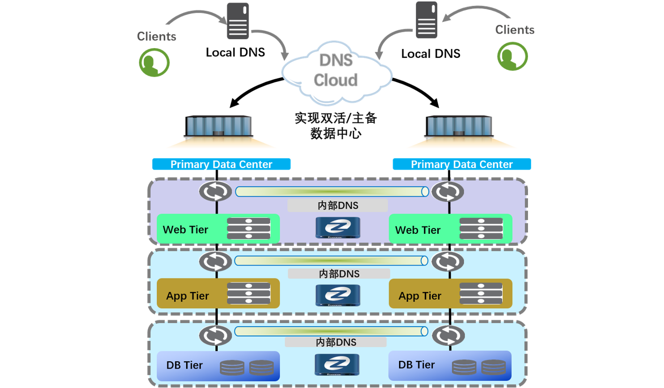 数据中心为提高应用系统的可靠性,实现多站点资源分布式部署,提高资源的利用率,需要多站点的应用系统构建成多活或主备工作模式。为了与IP地址解耦,通常会使用域名系统(DNS)来调度这些应用。奥林匹斯之门 pp电子奥林匹斯之门多数据中心域名(DNS)解决方案以IT整体架构为蓝图,以业务陆续在性保障为目标,利用域名解析门户应用调度功能,可将用户访问流量引流到可靠、可用的数据中心进行访问,既能保证用户的使用体验,又能达到应用容灾的无感切换的目的。